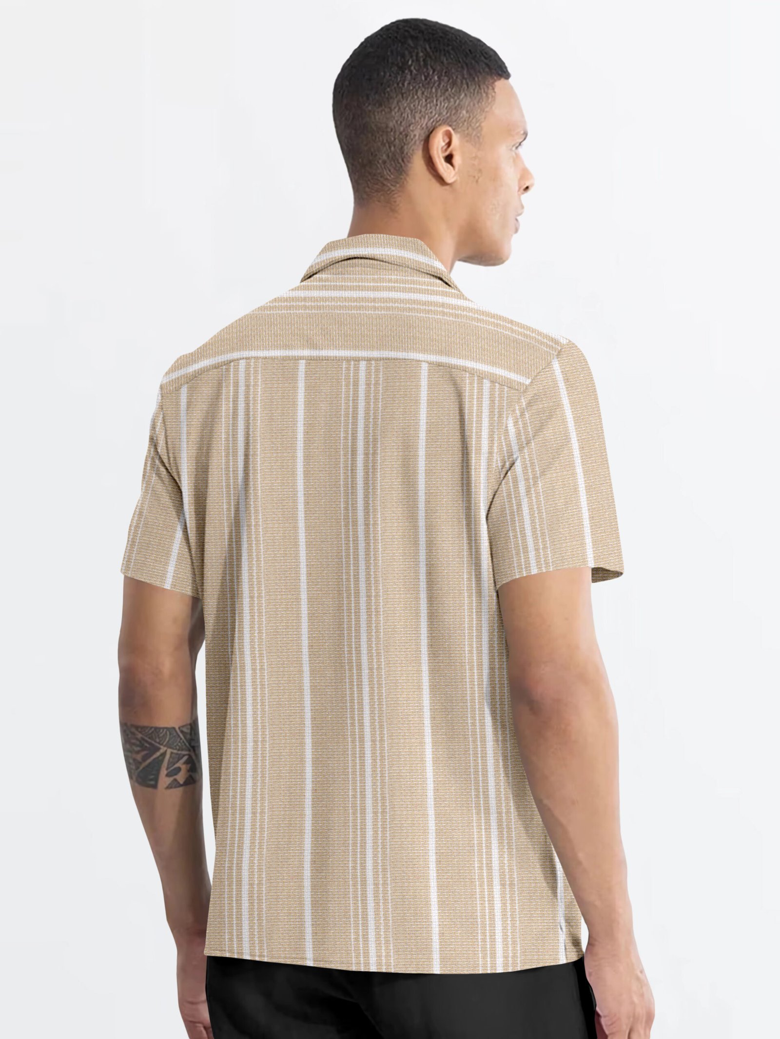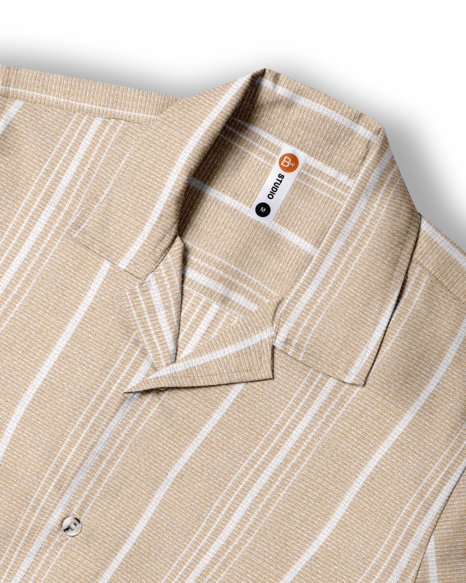 Effortlessly stylish, this premium checkered Cuban collar shirt blends soft woven fabric with timeless navy-and-white charm.